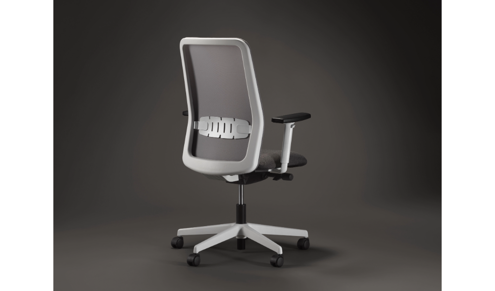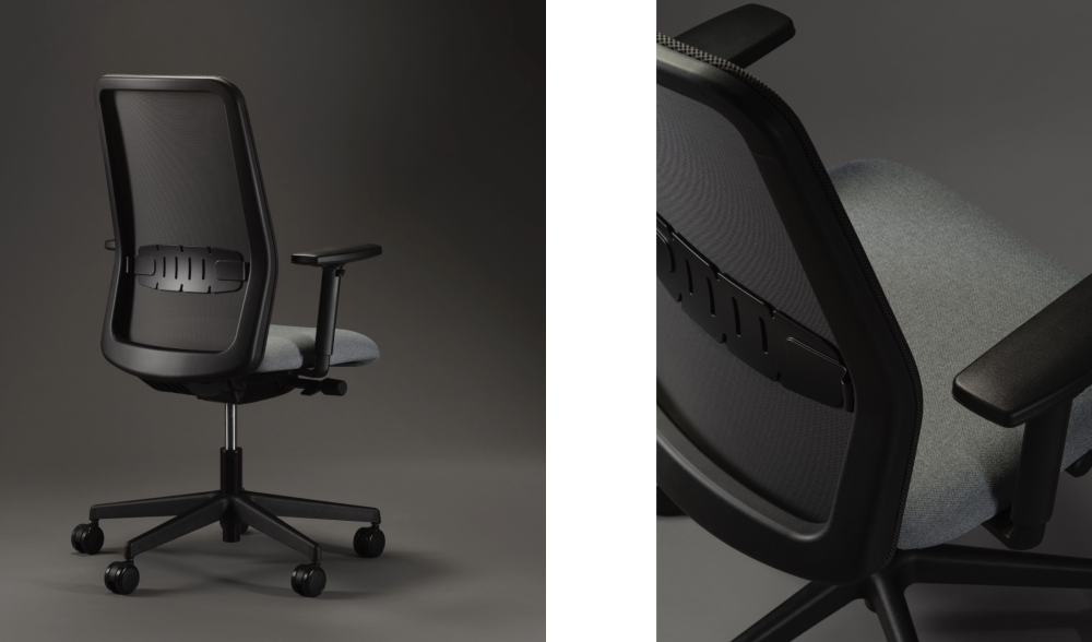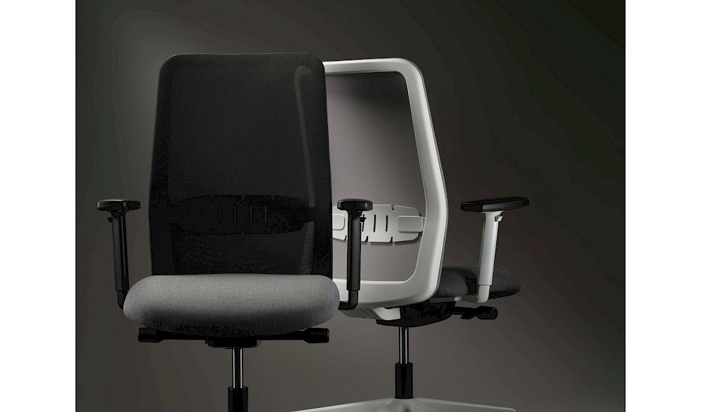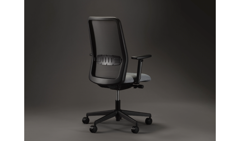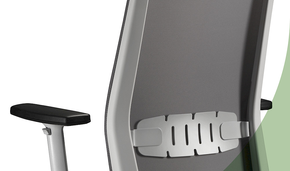 Die lineare Netzrückenlehne wird durch eine zeitgemäße Lendenwirbelstütze ergänzt.