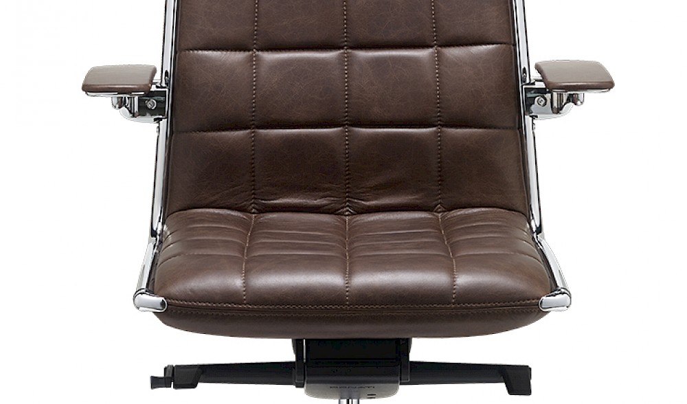Die Kollektion Vega, Design Sergio Bellin, bietet vielfältige Varianten, um allen Anforderungen entsprechen zu können. Sie kann minimalistisch und elegant sein oder, dank der speziellen Nähte, eine markante Persönlichkeit aufweisen. Das Design ist informell und gleichzeitig edel. Der Stuhl ist mit einem vollständig aus Stahl bestehenden Innengestell ausgestattet, das mit flexiblem und unverformbarem Polyurethan verkleidet ist und über elastische Riemen für den maximalen Komfort verfügt. Für die Struktur kann man auch individuell eine verchromte oder eine halbmatte schwarze Ausführung.