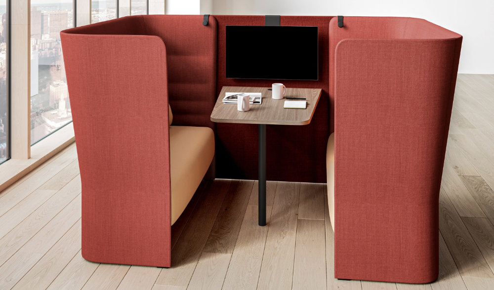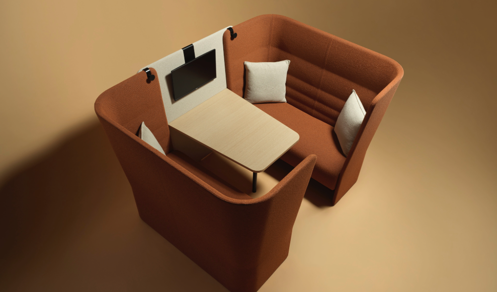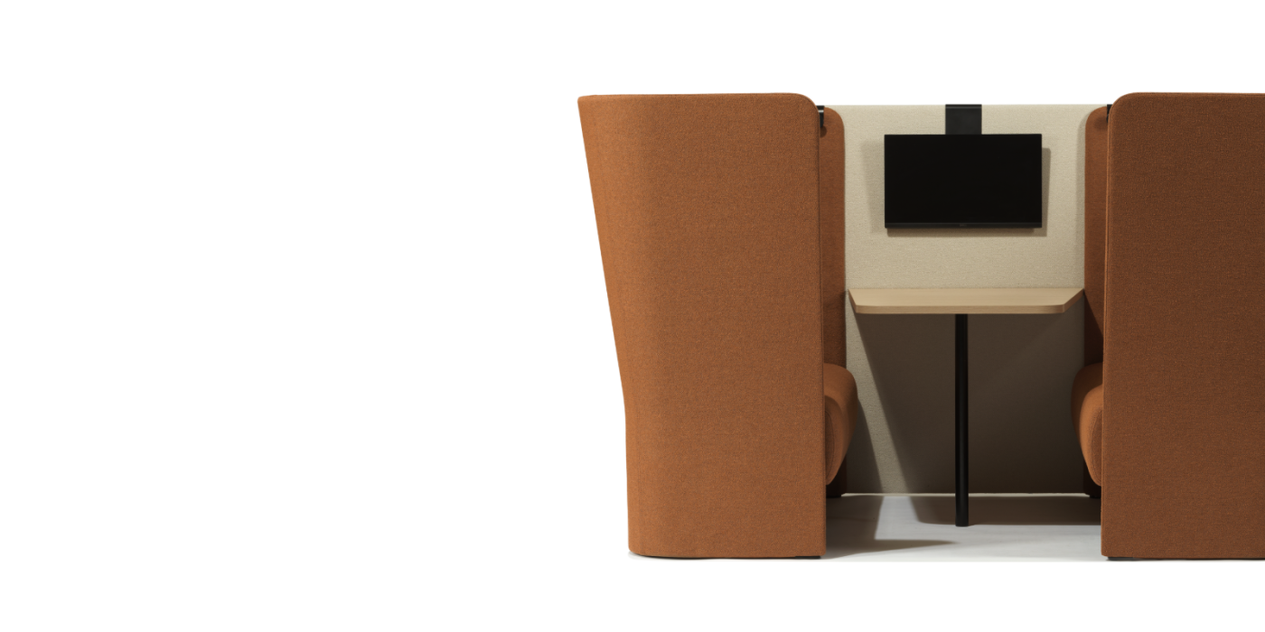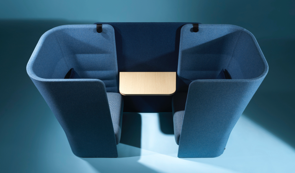 The added panel with integrated coffee table creates the perfect product for airports, offices or any open environment where the need for privacy meets the dynamism of modern work.