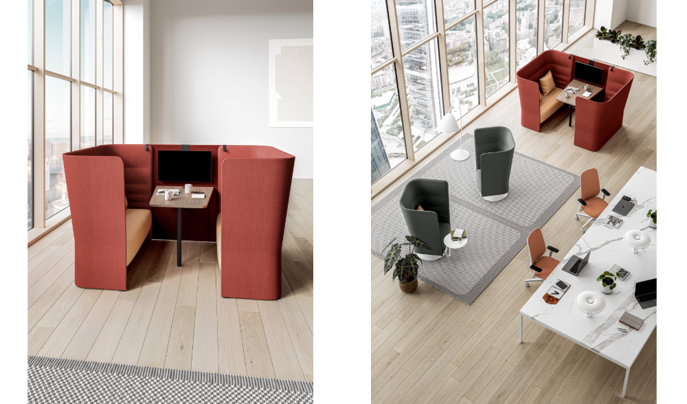 The high partitions of Cell128, which create CellSpace, offer the perfect spot where you can make a video call without distraction either visually or acoustically in complete comfort.