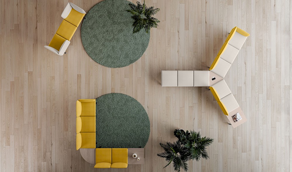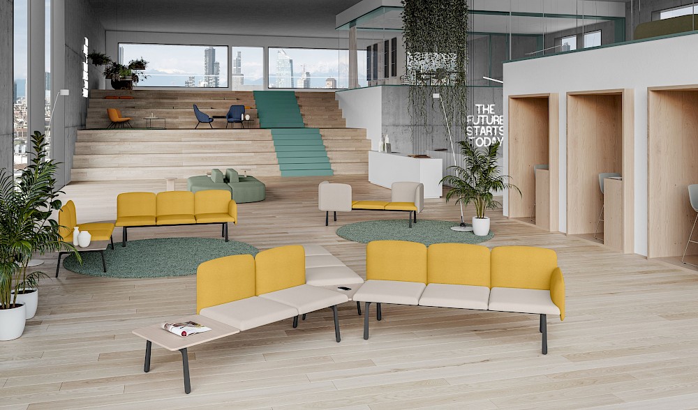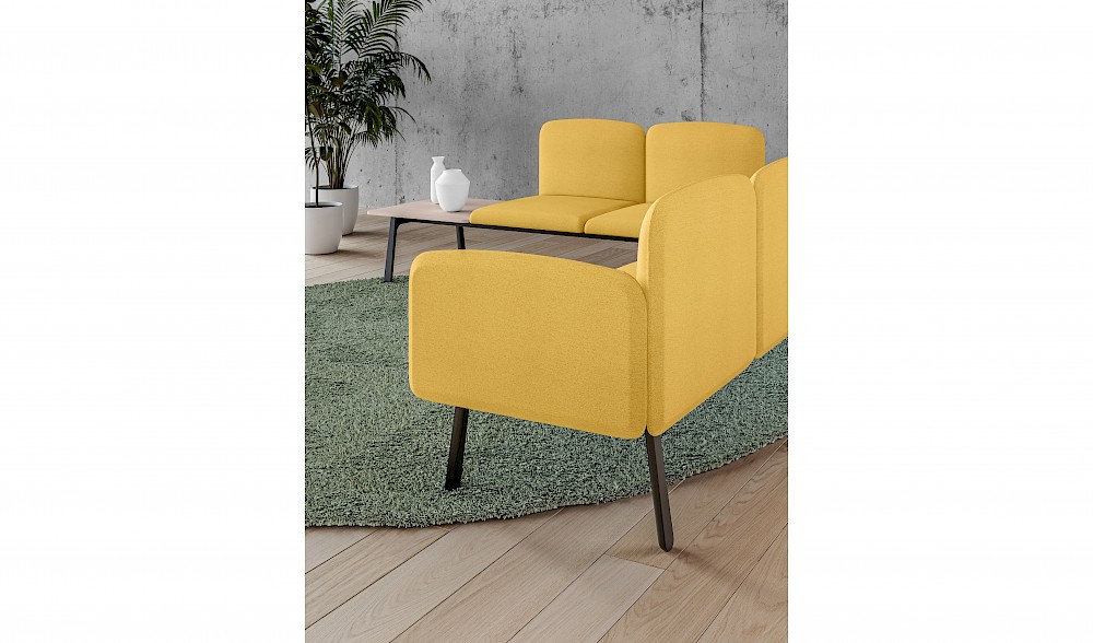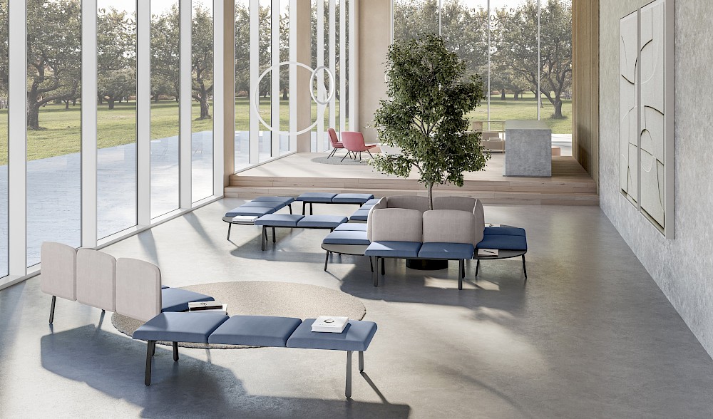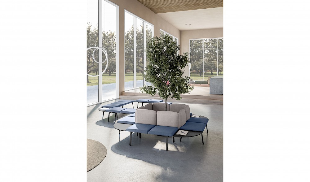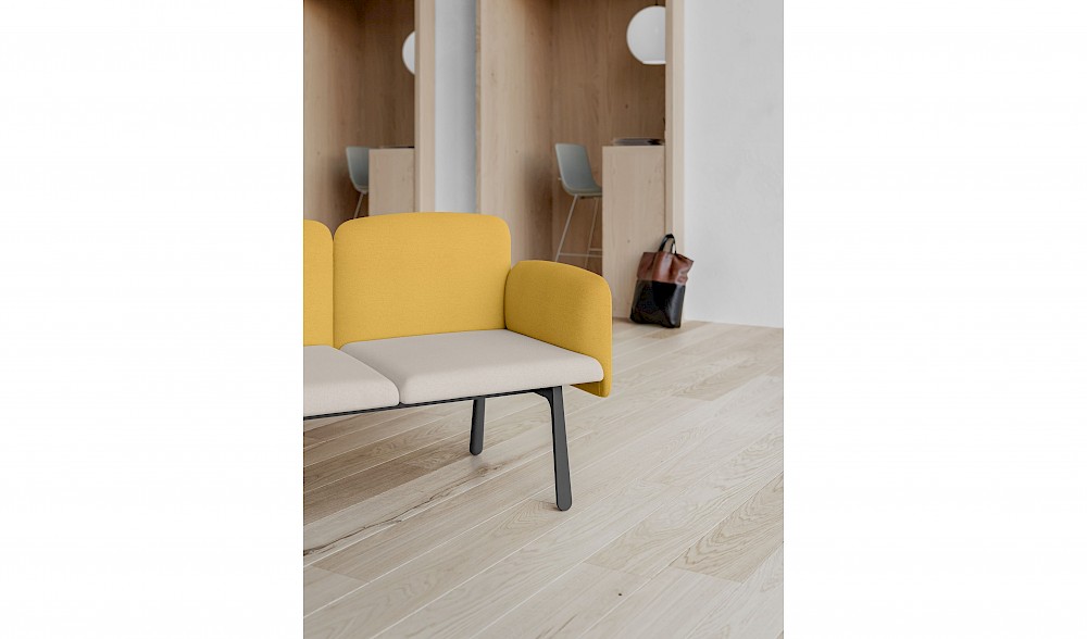 Drop is built around three elements: the backrest, armrest and seat, supported by structures housing from 1.5 to 4 units which can be connected to one another by tops in different shapes and sizes, thus creating modules with ever-changing looks.