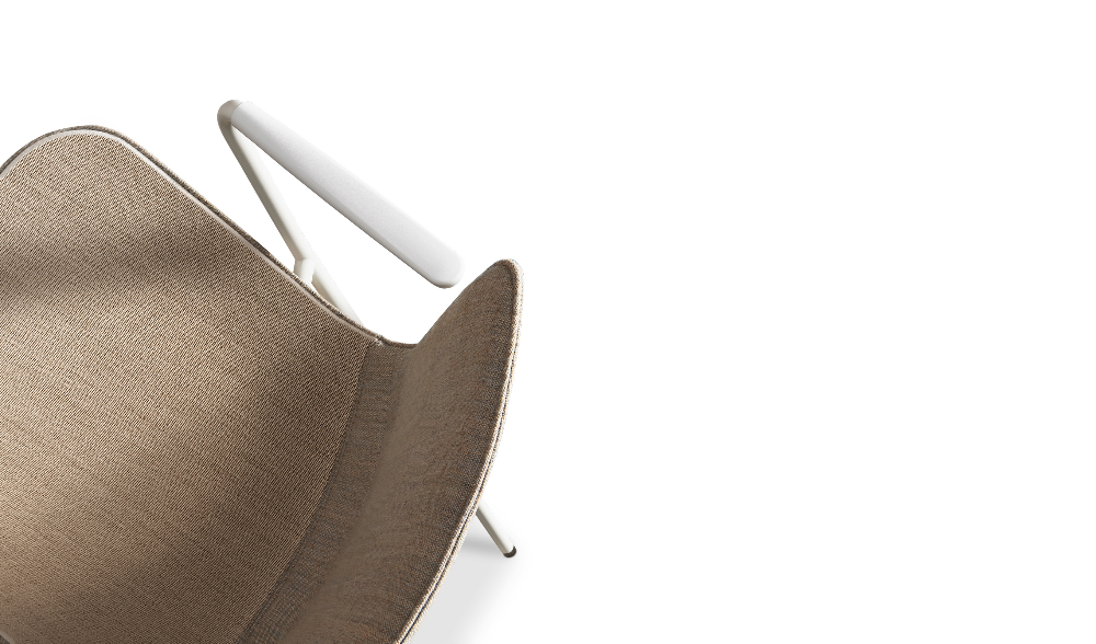 Made of 100% post-consumer recycled flame-retardant polyester, it meets sustainability criteria and is the result of a mix of single-color and melange fibres, which creates a simple but distinctive two-tone grid design. Soft to the touch, it has a dull and slightly irregular appearance that mimics the texture of natural textile fibres.