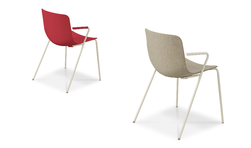 Milos Elle (Dorigo Design) offers the aesthetic of the Milos model with a structural variant focused on materials performance research. The polypropylene shell has an incredibly fine thickness, the result of advanced design research, which has led to an aesthetic result of extreme lightness, maintaining maximum resistance in the seat. The integrated linear armrests complete seating comfort.