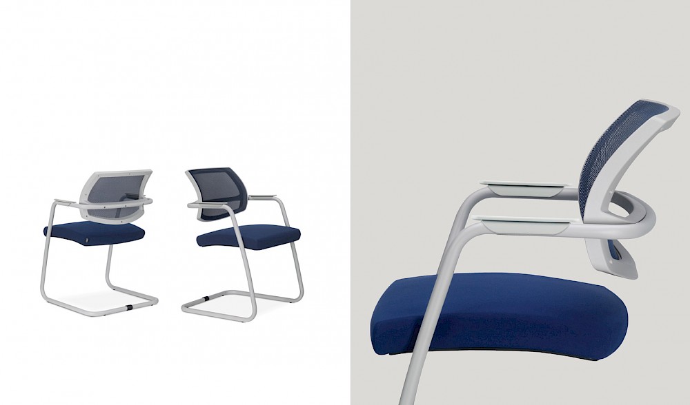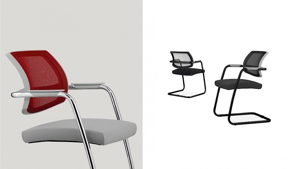 Designed for public and work environments and featuring extremely lightweight volumes and lines, Unimesh is the ideal seat for guests in meeting rooms and training rooms. The sled structure in high-strength tubular steel with integrated armrests supports the ergonomic back covered in highly breathable mesh and the shape-retaining padded seat with Comfort-Air technology.