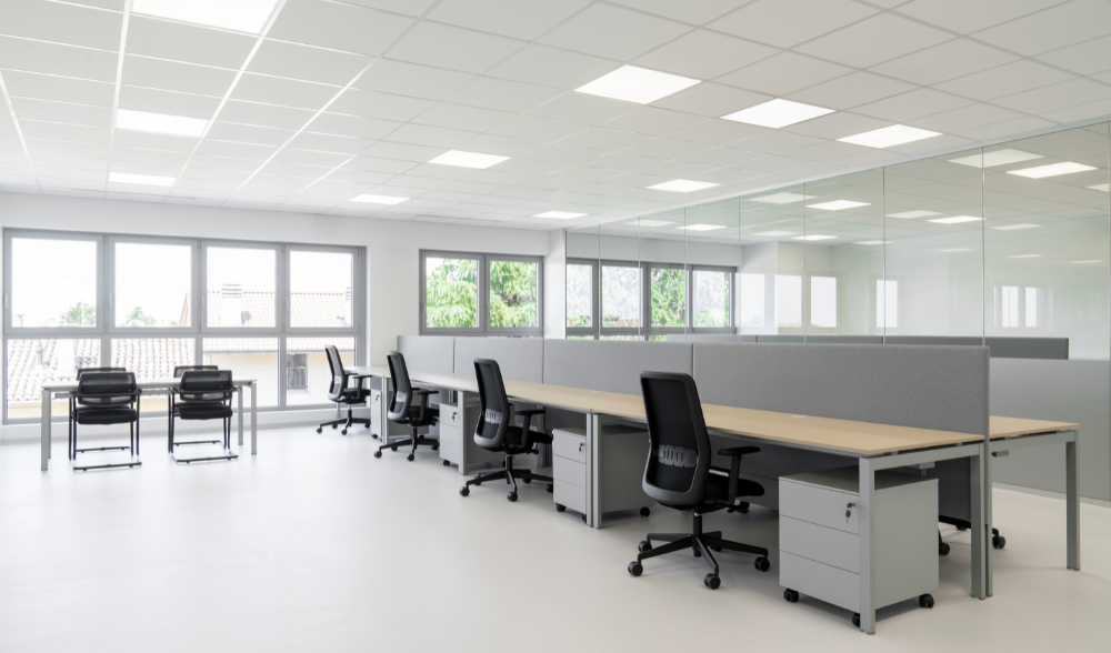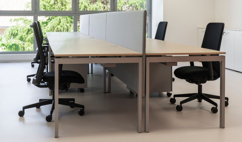 In the open space, 68 Nova task chairs were installed, ideal for everyday use thanks to their ergonomic support, adjustability, and contemporary, understated design. Each workstation is completed with DVO desks and sound-absorbing panels that promote acoustic well-being, making the environment more comfortable and productive.