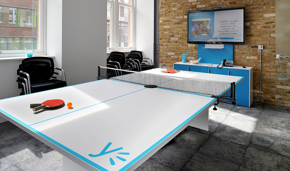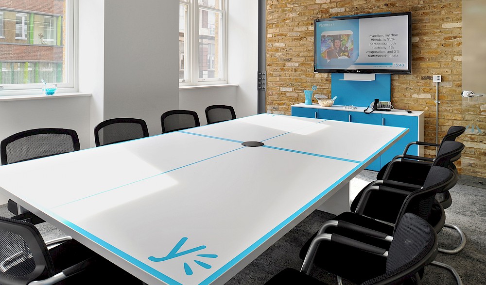 Lavorare con il web richiede passione e spirito di innovazione ma anche confort. Ecco allora che lo spazio acquista valore così come l'arredamento che lo riempie. Tavoli da riunione diventano si trasormano in piani per ping-pong così come le sedute per i meeting più importanti donano comfort e relax nello svago.