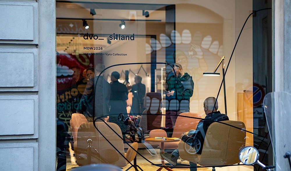 Para complementar las novedades de Sitland en el relato del showroom, también se presentan las distintas novedades de Dvo, desde el sistema de mesas Anchor hasta la colección Silhouette, compuesta por mesa, aparadores y estantería.