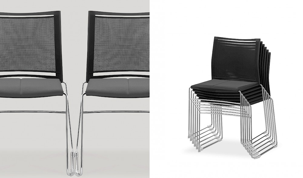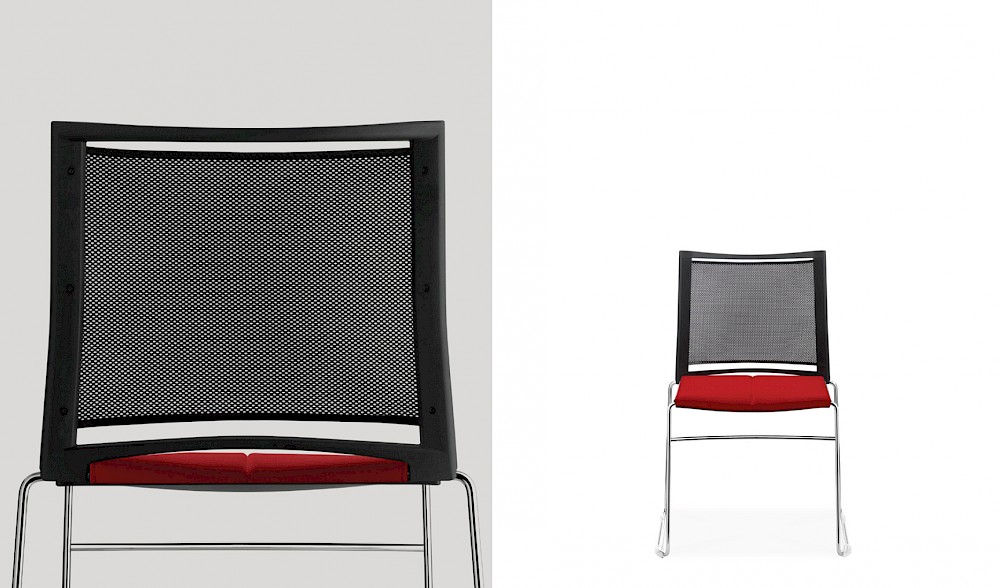 Defined by an understated design which underscores its light weight and slim volumes, Mail is a multitasking seat, designed for public and shared spaces. Available with and without armrests and in the stool version, it offers a highly breathable back featuring geometric weaves and a padded seat which can be personalised with different finishes. It can also be fitted with a writing tablet and magazine rack. The version without armrests can be stacked horizontally.