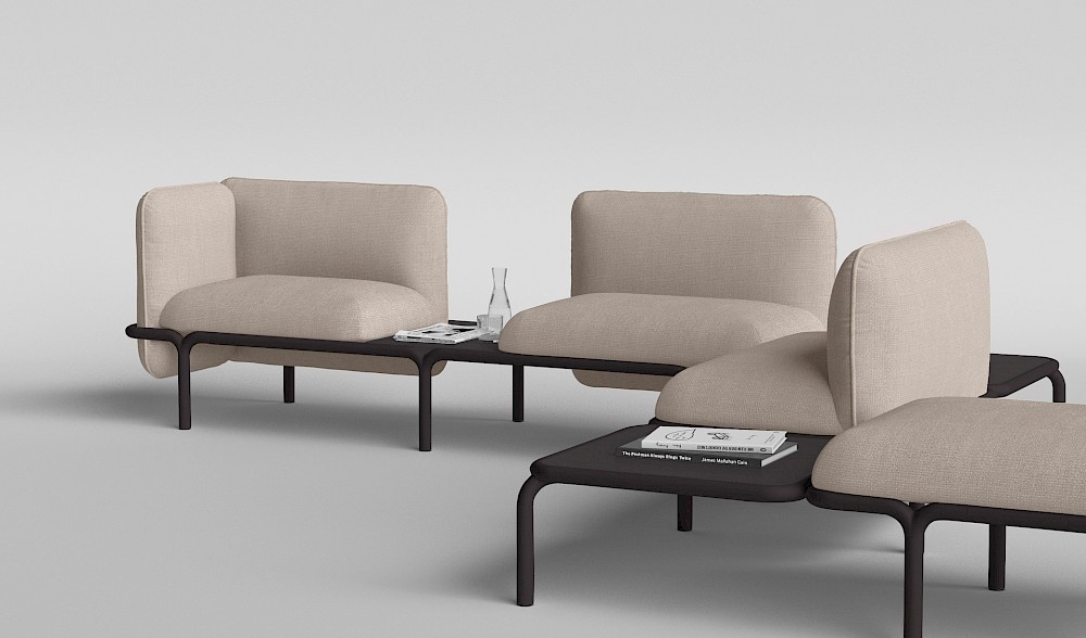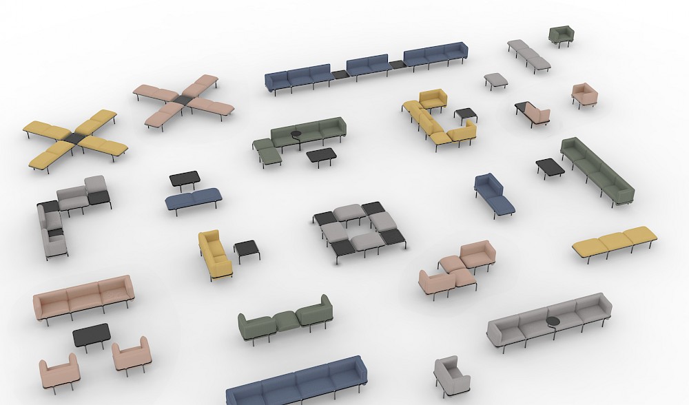 La gamme Bomm offre la possibilité de créer des configurations à l’infini en combinant 9 structures différentes en acier tubulaire avec 6 modules de siège, avec ou sans dossier, et 3 modules de table. Un système facile à configurer et à adapter aux diverses exigences d’utilisation et d'espace. La collection est complétée d'accessoires fonctionnels : table pivotante, porte-manteau et prises USB encastrées.