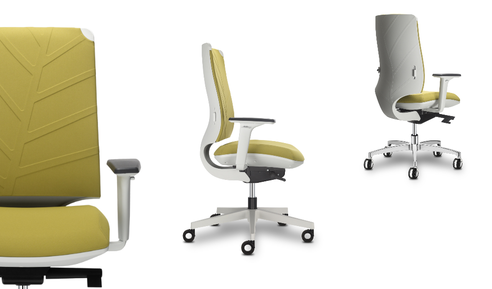 Leaf, design Sergio Bellin, est une collection qui s’inspire de la linéarité des feuilles et de leurs nervures. Le revêtement du dossier est constitué d’une membrane élastique pouvant s’associer à différents types de tissus ou de résilles transpirantes. L’innovant système d’application du dossier garantit une parfaite adaptabilité à la posture de l’utilisateur. L’épaisseur de l’assise en mousse garantit un confort supérieur tandis que les nombreuses possibilités de réglage de l’angle permettent de régler la profondeur à la position souhaitée ou d’opter pour la position libre et une ergonomie personnalisée.-