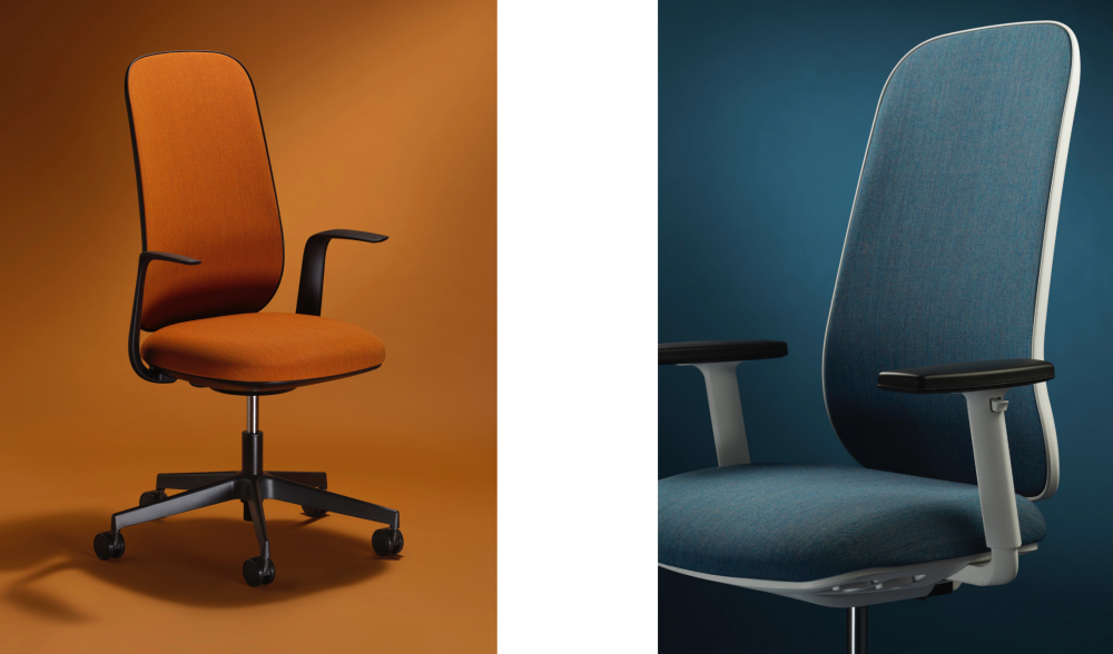 Parfaite pour le bureau comme pour le home-office grâce à son design minimal, il est possible de personnaliser l'assise et le dossier (en maille ou en tissu) avec une large gamme de tissus et de couleurs.