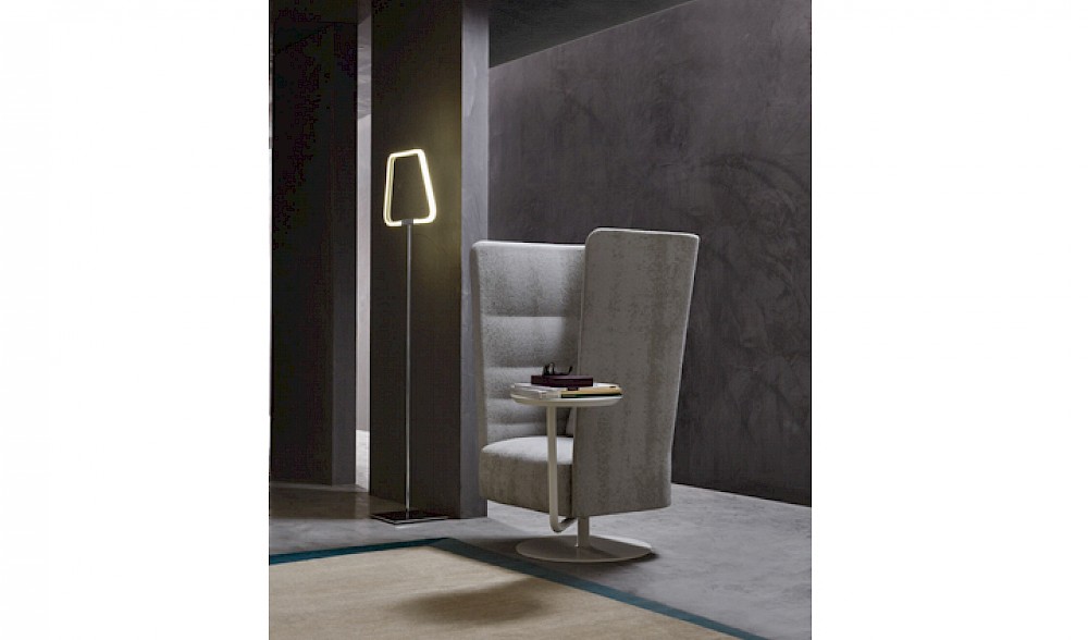Il sistema di sedute Dorigo Design, caratterizzato dall'originale schienale extra altezza, dedicato a discrezione e relax. Cell128 offre riservati istanti d'isolamento, preziosi per una pausa o un'estemporanea sessione lavorativa. Un elegante tavolino, con supporto e piano girevole, completa il comfort dell'arredo, personalizzabile con caricatore USB.
