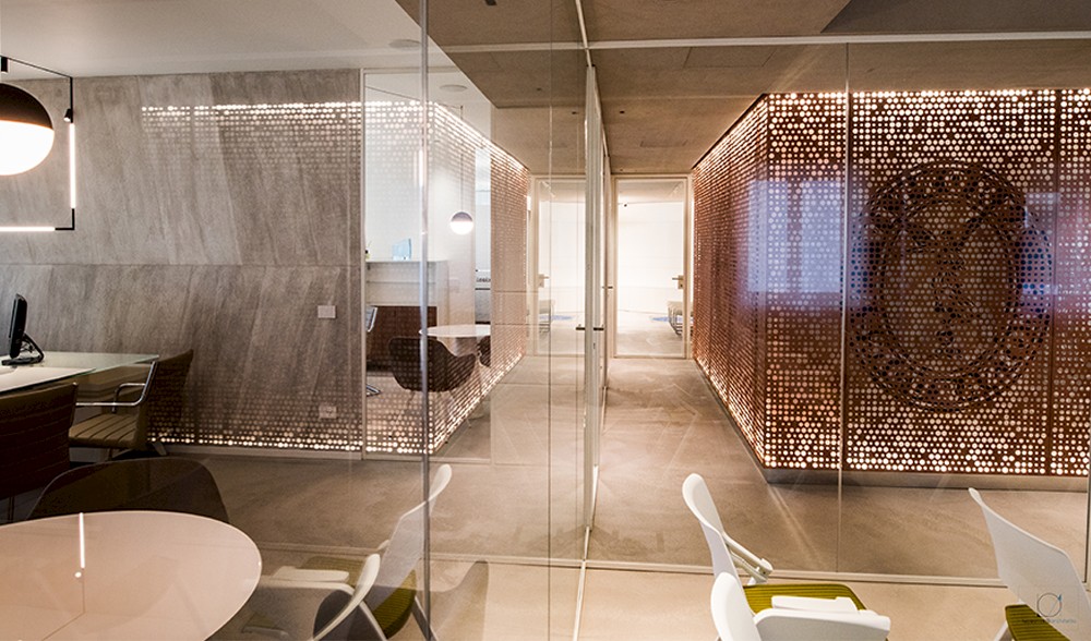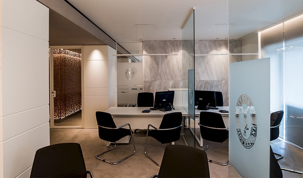 Il progetto per la realizzazione degli uffici della Vittoria Assicurazioni, in Catania, di Rampolla s.r.l. è caratterizzato dalla ridefinizione degli spazi con lo scopo di ottimizzare l'aspetto funzionale. L'utilizzo di pareti vetrate ha consentito di separare gli uffici direzionali dagli operativi, mantenendo comunque la permeabilità visiva dell'intero spazio, creando un unico punto focale caratterizzato da un volume contenente il logo della società, rivestito da una lamiera forata.